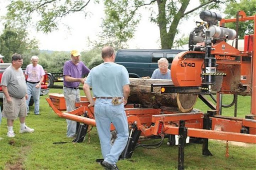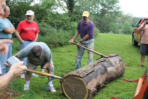 The meeting actually was preceded my an event. Not just any event, either, but a free wood event. One of the greatest benefits of being in the Water Gap Woodturners is our membership resources. Ed Brannon connected us with the Park, and Dick Plog volunteered to trailer his Woodmizer bandsaw mill to cut the free walnut logs dropped off by the Park.