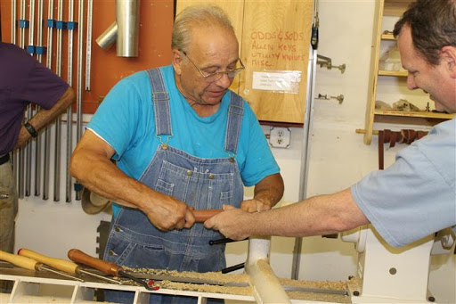 In the end, a good time was had by all, and wood was turned. A first was witnessed… as I actually allowed sanding on the project and walked him through my sanding regimen.