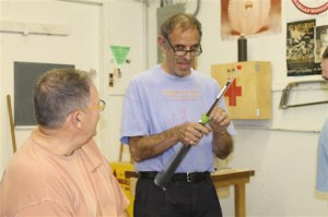 Our June meeting had a surprise visitor: Graeme Priddle (tan shirt and flip flops) was in town to teach at Peters Valley over the weekend, and joined us a couple of days before his class began (as opposed to wild Peters Valley nightlife 😉