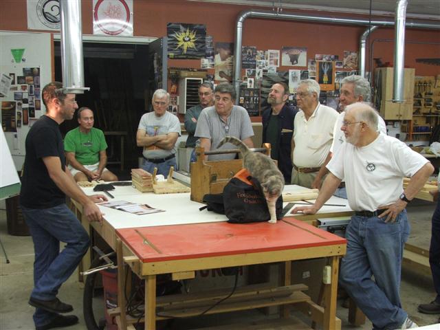 The WGW meeting was held on February 11, 2009 at the Peters Valley Craft Center Woodshop in Layton, NJ. Roughly a dozen members were in attendance and braved the mud on Thunder Mountain Road. Only one car got stuck, and was quickly extricated thanks to a downhill lie…