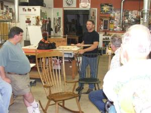 Our main topic for the night was Peter Galbert, a well know chair maker from NY State. Peter began his presentation by talking a little bit about the history of the Windsor and what attracted him to making them. Much of the work is done without the use of electrons with very simple hand tools. Peter opened up his tool box to show us some tapered reamers and “tools of the trade”.