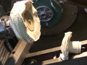 During the main discussion, the topic was “Jig, Tips, and Fixtures”. Sevral member brought in some of their favorite hints for holding work on the lathe. We saw several versions of the Straka Chuck (aka Donut chuck), cone centers for reversing hollowforms, and how to turn your lathe into a variable speed buffing system. (you’ll never throw away a bedsheet again!)