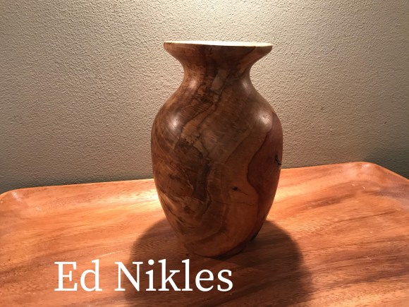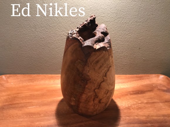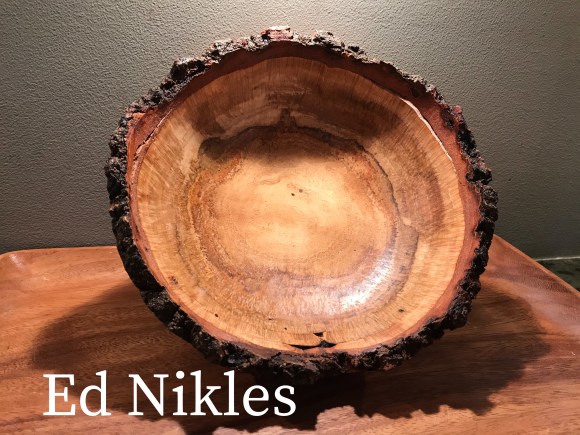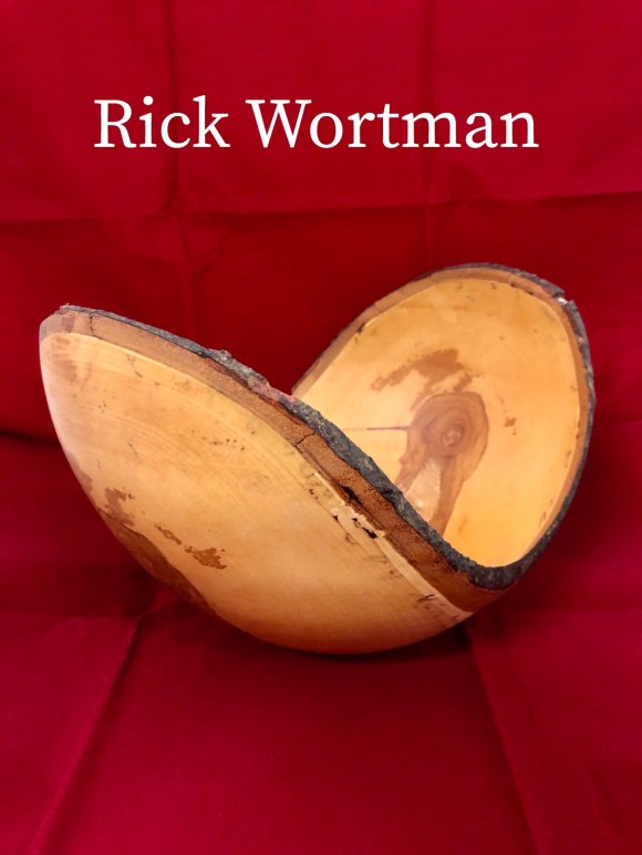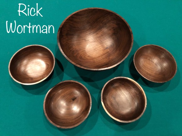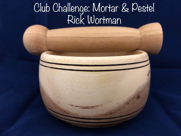 Show and tell for this meeting featured the mortar and pestle challenge pieces. These can be seen in detail in the earlier “Club Challenge” post. Rick Wortman also showed a very deep natural edge bowl and Ed Nikles presented several pieces he’d made from half of a single white oak burl. These can be viewed in the Gallery.