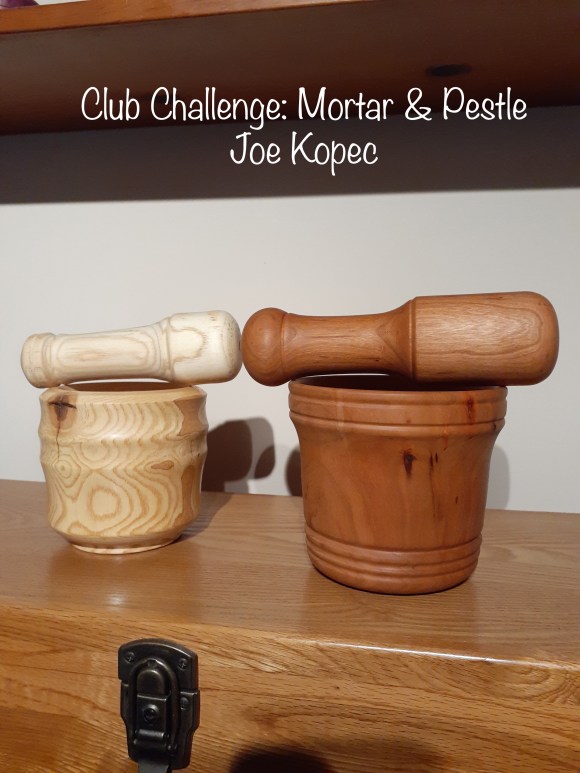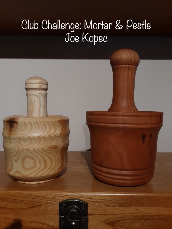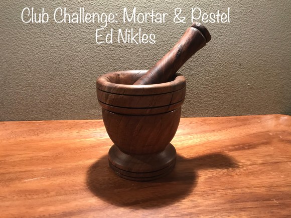 The pestle has a flat end for smashing and a round end for grinding. The bottom of the mortar is flat and where the walls and bottom meet is rounded for the two different uses. It was shown in an old AAW magazine and is available on AAW website. The wood is Hickory.