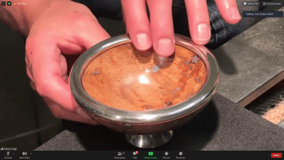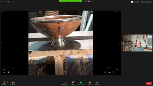 The NJ Woodturners hosted a mini-clinic – via Zoom — by Dennis Fuge entitled: “Adding Pewter To Your Artwork”. Dennis’ presentation – a series of short videos – took members through all the details of casting, shaping and fitting pewter adornments to turned objects with beautiful and stunning results.