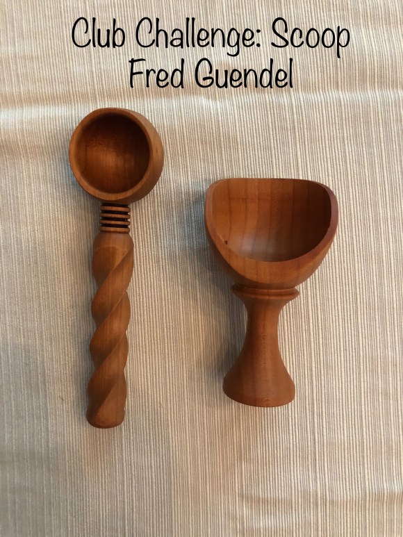 Fred Guendel — Two coffee scoops and a flour scoop. One of the coffee scoops and the flour scoop are made from cherry with an oil/wax finish. The coffee scoops have a barley twist handle.