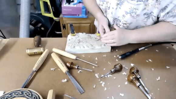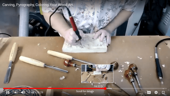 NJ Woodturners hosted a mini clinic featuring Patty Jennings– via Zoom – on Monday, August 31. Patty, a member of both the NJ Woodturners and Watergap Woodturners clubs, gave a beginner’s lesson on carving and enhancing wood art with color and pyrography.