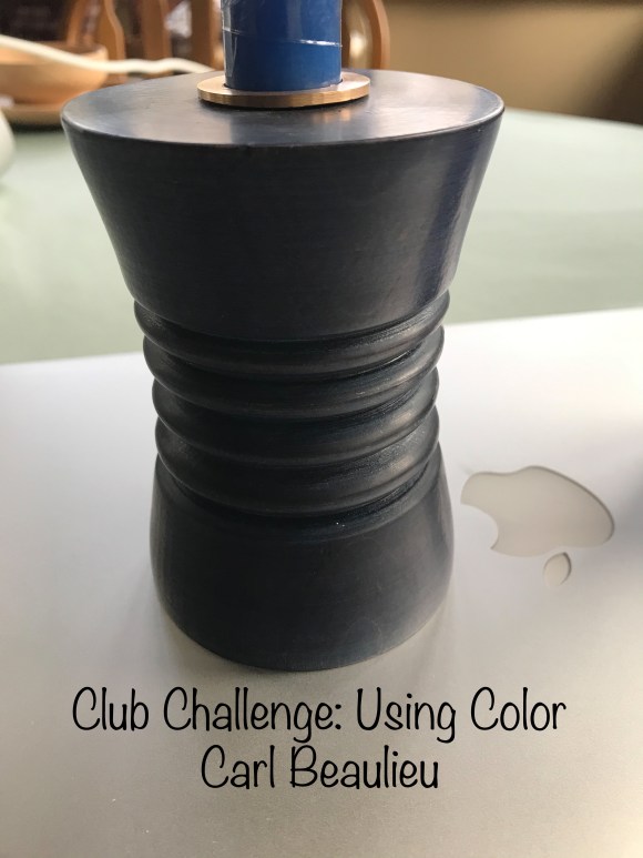 This month’s club challenge was color in our turnings and members turned in some very fine efforts.