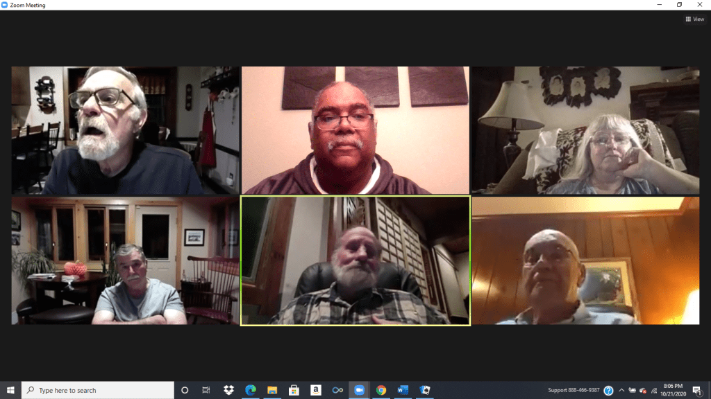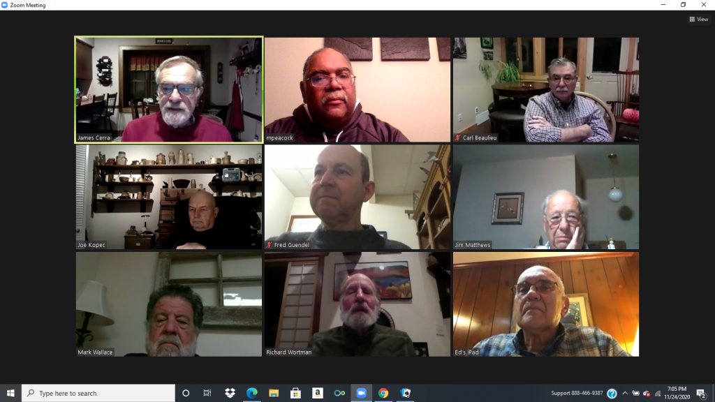 Our meeting was held on October 22 at 7:00 via Zoom. Attending were Jim Cerra, Rick Wortman, Carl Beaulieu, Patty Jennings, Ed Nikles and Mike Peacock.