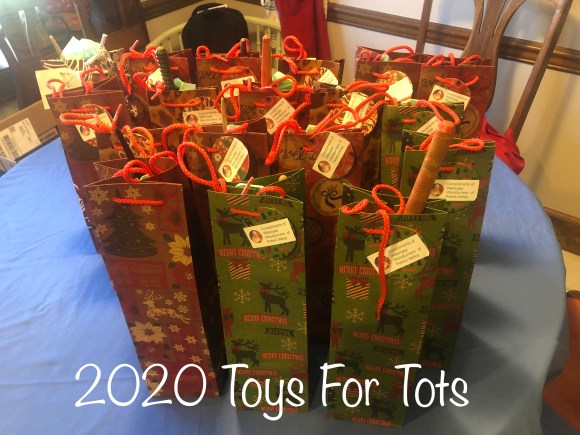 I am happy to report that the “toys for Tots” program, 2020 version, is now “in the books”. Today I delivered 19 bags, each containing 3 toys, to Project Self Sufficiency in Newton. They were very happy to be recipients of hand-made Christmas gifts. As you can see from the attached images, our production, although a bit short of 2019, was still impressive. A thank you is in order for all of our members who participated and your willingness to work through the current difficulties is laudable. Thanks again.