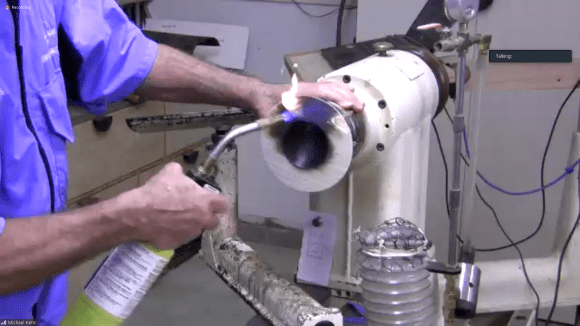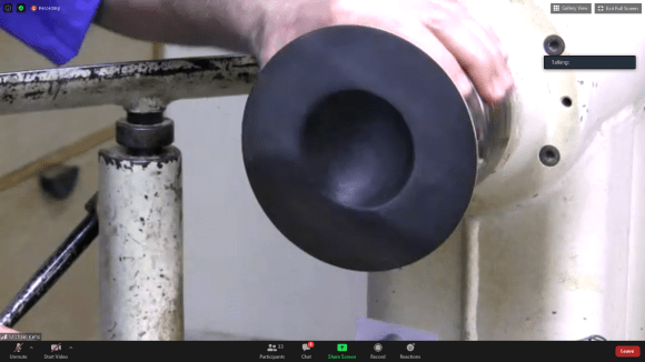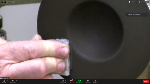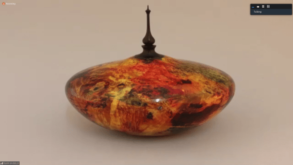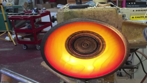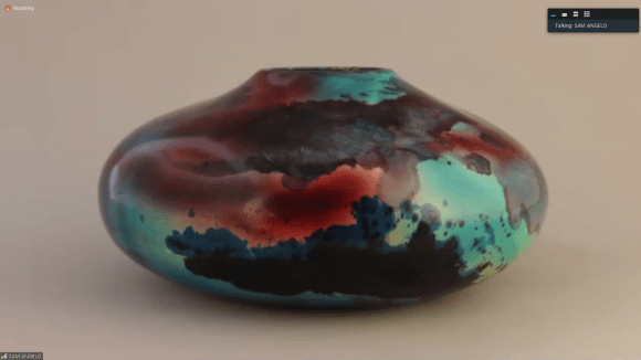 Sam demonstrated coloring with markers, airbrushed stains, guilder’s paste and metal reactive paints — paints that contain metal powder and react to a sprayed on solution. He also showed how spectacular patterns could be achieved by coloring the inside of thin walled hollow forms so the colors bleed through. A full video of the demo is available on YouTube: https://m.youtube.com/watch?v=Ai_LWcQZ59s