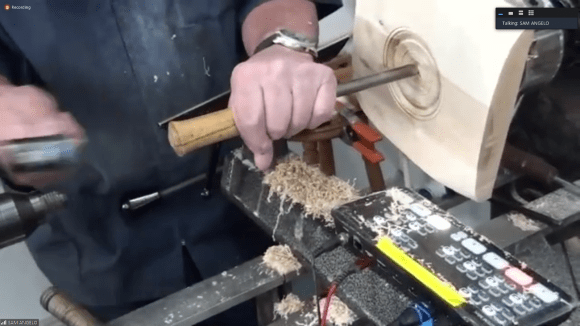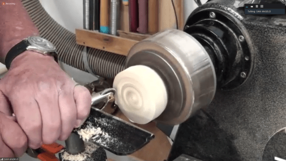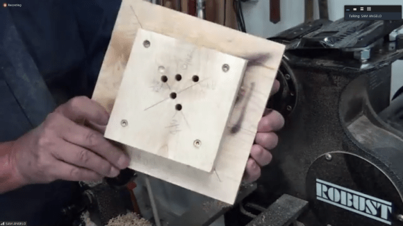The NJ Woodturners hosted a demo by Sam Angelo (a.k.a. WyomingWoodturner) on enhancing wood through texturing and coloring on July 27, 2020 via Zoom. Sam showed how the use of not only various commercial texturing tools but also objects that one might not consider — like screw bits, leather working tools and spur drives hammered into wood — can yield interesting textures. Sam also showed how different textures can be achieved by burning the wood and by spinning an object in reverse and on multiple axes on the lathe.