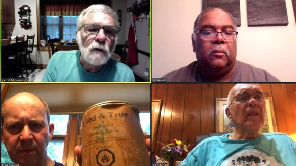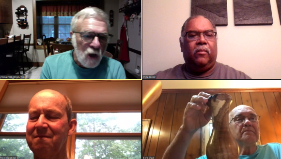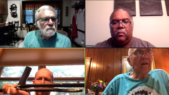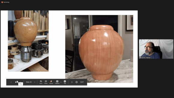The meeting was held on July 22, 2020 via Zoom. In attendance were Jim Cera, Fred Guendel, Ed Nikles, Jim Mathews and Mike Peacock. During show and tell Ed Nikels displayed some bowls and vases he’d turned recently. Fred showed several hollow forms he’d made. He also showed and discussed the hollowing tool he uses. Both Fred and Ed talked about “Tried and True” varnish oil finish they used. Mike and Jim described the “Fire Sanding and Coloring” demo by the NJ Woodturner’s Michael Kehs (photos can be found in an earlier post). Jim mentioned that he was currently trying this decorative method on one of his turnings. All attendees discussed the unfortunate reality that for the foreseeable future – due to COVID-19 — our meetings will likely be on Zoom and the hope of increased participation.